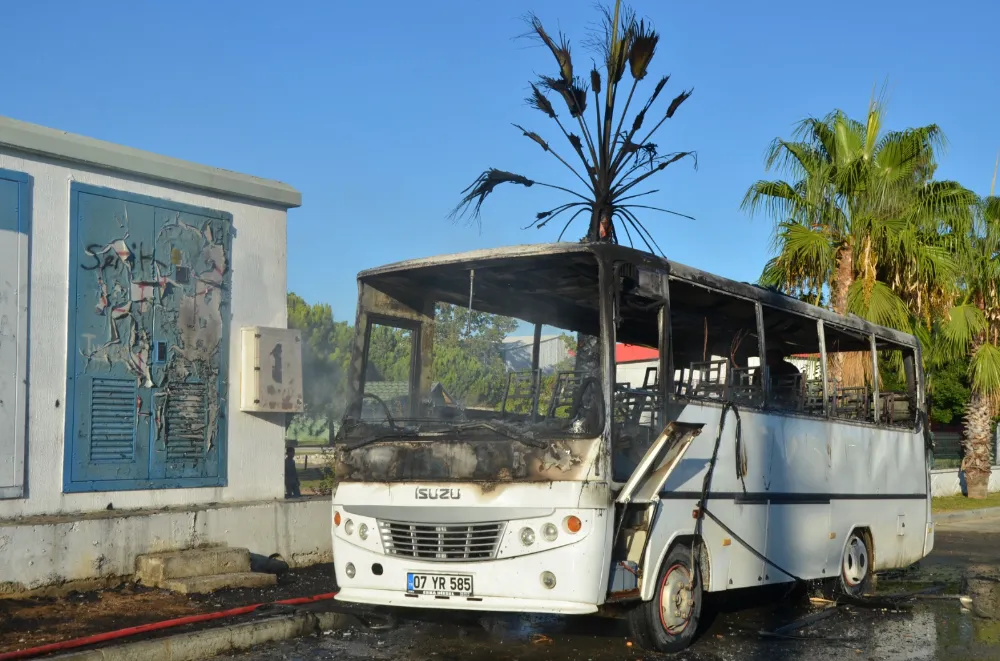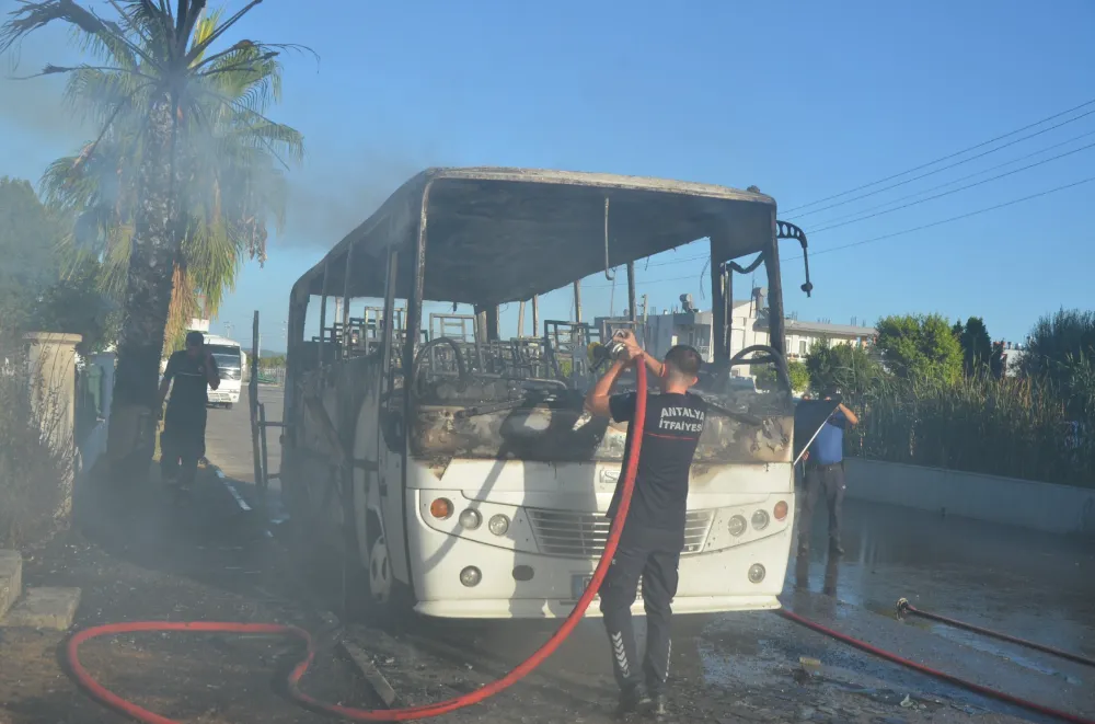 Akçaalan Mahallesi 4171 sokakta park halindeki Muharrem Uysal'a ait 07 YR 585 Plakalı otobüs henüz bilinmeyen nedenle yanmaya başladı.