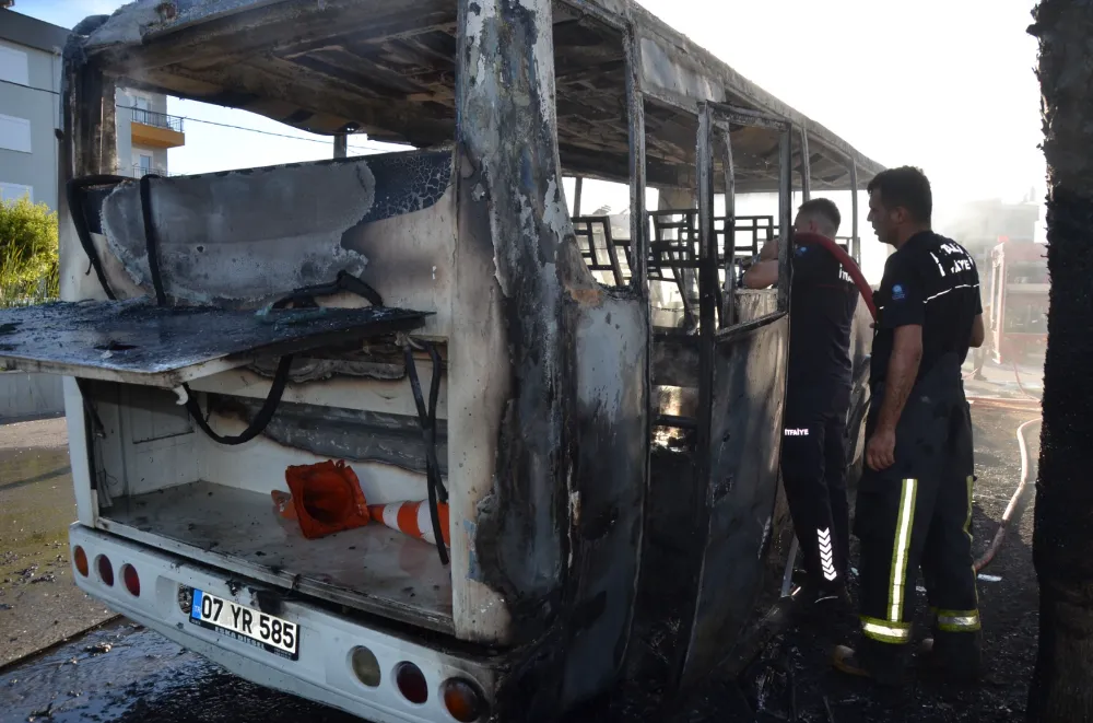 Otobüsün yandığını fark eden vatandaşların durumu 112'ye bildirmesi üzerine olay yerine gelen itfaiye ekipleri yanan otobüse müdahale etti. Park halindeki otobüs yanarken, hemen yanında bulunan Palmiye ağacı da alevlere teslim oldu. İtfaiye ekipleri yaptıkları müdahalenin ardından yangın söndürülürken araç kullanılamaz hale geldi. Yanan palmiye ağacı ise zarar gördü. Yangının meydana geldiği alanda elektrik trafosunun bulunması ve zarar görmemesi mahalle sakinlerine derin bir nefes aldırdı.
