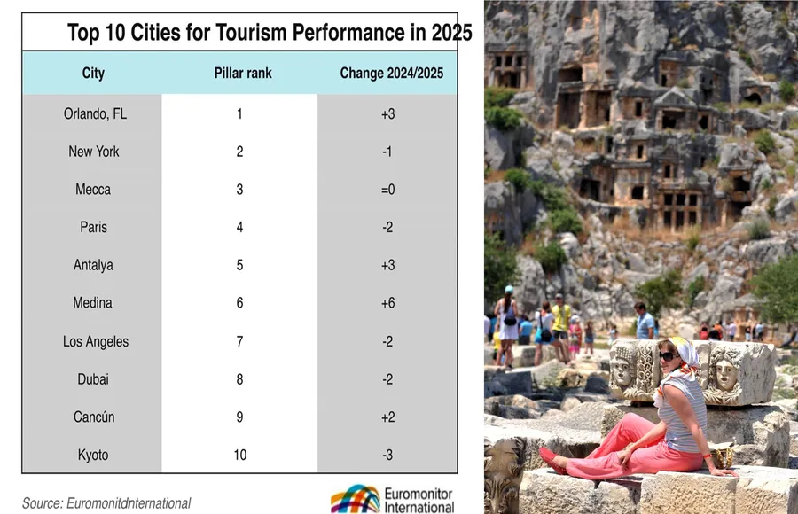 Uluslararası araştırma şirketi Euromonitor, her yıl olduğu gibi bu yıl da 'Dünyanın En Çok Ziyaret Edilen 10 Şehri' listesiyle birlikte 'Dünyanın En İyi 10 Turizm Destinasyonu' listesini açıkladı. İki listenin de Türkiye açısından önemine dikkat çeken Antalya Kent Konseyi Turizm Çalışma Grubu Başkanı Recep Yavuz, “'Dünyanın En Çok Ziyaret Edilen 10 Şehri' listesinde Türkiye'den 2 şehir yer alınca, haber Türk kamuoyunun ilgisini daha da çok çekti. Listede 5'inci sıradaki İstanbul dünya genelinde en önemli şehir destinasyonlarından biri. Listede 8'inci Antalya, resort turizm ve tatil destinasyonu olarak en çok ziyaretçi alan şehir. Listede aynı ülkeden 2 şehir olan tek ülke Türkiye. Dünya genelinde 100 şehrin verileri üzerinden çalışma yapıldığını göz önüne alırsak, bu sayısal anlamda önemli bir başarı" dedi.