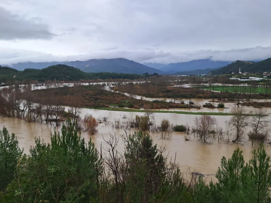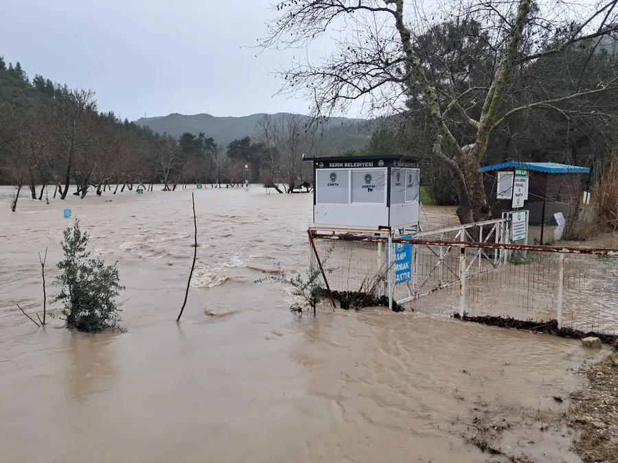 Serik ilçesinde devam eden sağanak yağışın ardından Köprü Çayı Irmağında su seviyesi yükselmesinden Belkıs ve Sarıabalı mahallesinde bulunan Restoranların bahçeleri, meyve bahçeleri ile Serik Belediyesine ait Şahintepesi Piknik alanı sel sularının altında kaldı.