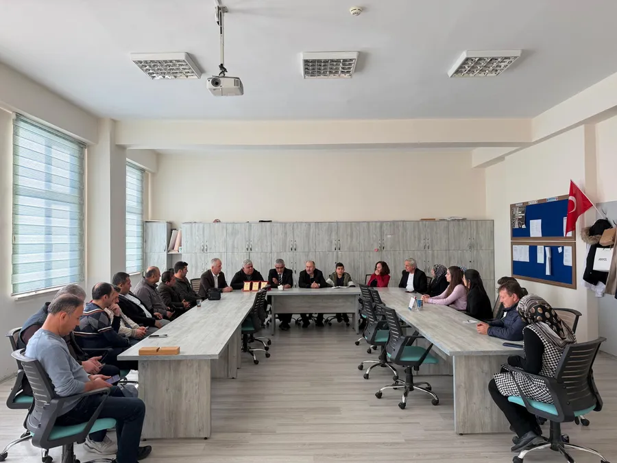İlçe milli eğitim müdürü Ekiz açılış sonrası öğretmenler odasında okul idaresi ve öğretmenlerle bir araya gelip okul faaliyetleri hakkında bilgi aldı.