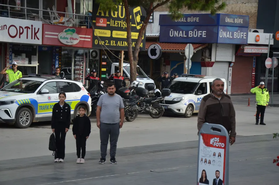 Saatler 09:05’i gösterdiğinde tüm yurtta olduğu gibi Serik’te iki dakikalık saygı duruşunda bulunuldu. Ardından hep birlikte İstiklal Marşı okundu.