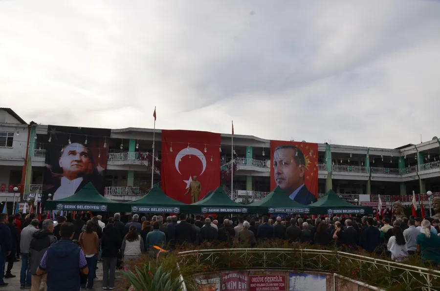 Cumhuriyet Meydanı Atatürk Meydanında düzenlenen törene Serik Kaymakamı Dr. Cemal Şahin, Belediye Başkanı Kadir Kumbul, Serik Cumhuriyet Başsavcısı Muhammed Kaan Özer, Siyasi Parti Temsilcileri, Kurum Müdürleri, STK Temsilcileri, vatandaşlar ve öğrenciler katıldı.