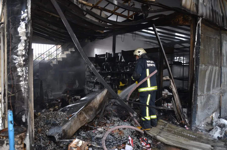 Antalya’nın Serik ilçesinde inşaat malzemesi firmasının deposunda çıkan yangında depodaki malzemeler küle döndü. Depo arkasında park halindeki servis minibüsü yangından kısmen zarar gördü.