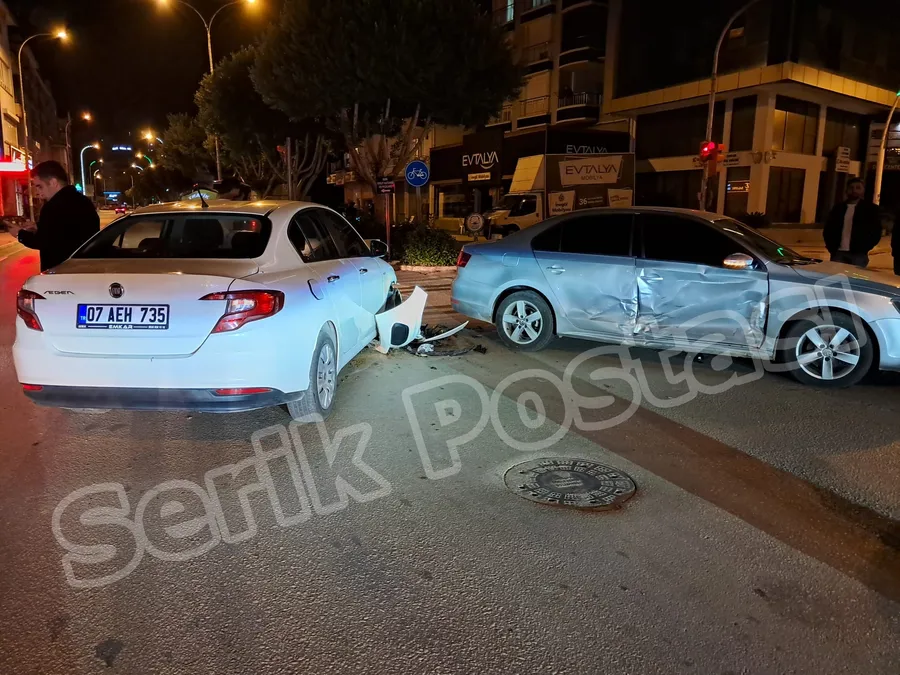 Edinilen bilgilere göre kaza bu akşam 22:00 sıralarında Serik ilçesi Merkez mahallesi Atatürk Caddesi üzerinde hastane kavşağında meydana geldi. Adem Aktuğ’un kullandığı 07 AEH 735 Plakalı otomobil ile seyir halindeki Arif Özen’in kullandığı 07 CCE 323 Plakalı otomobil hastane kavşağında çarpıştı. Kazada otomobil sürücüsü Arif Özen yaralandı.