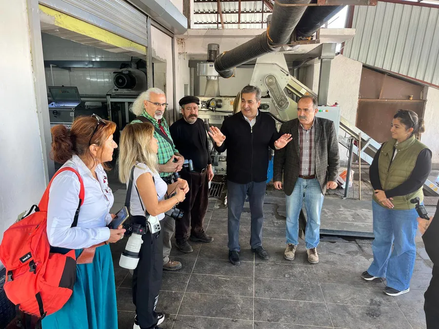 Çömezoğlu ve beraberindeki heyet zeytin hasadı sonrası Zeytinyağı tesisini ziyaret ederek Zeytinyağı sıkım süreciyle ilgili bilgi aldı.