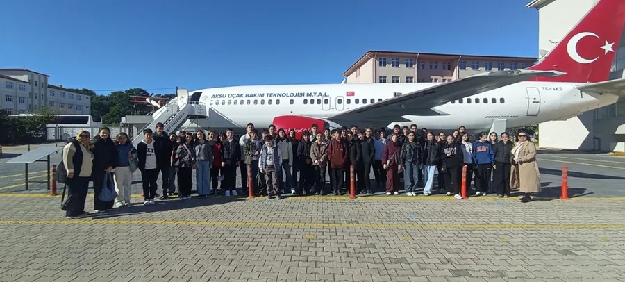 Gezinin bir diğer durağı olan Aksu Uçak Bakım Teknolojisi Mesleki ve Teknik Anadolu Lisesi’nde ise öğrenciler, mesleki ve teknik eğitimin sunduğu imkânları tanıdı. Havacılık alanında verilen eğitimler, atölyeler ve uygulamalı dersler hakkında bilgi alan öğrenciler, meslek liselerinin yalnızca bir meslek kazandırmakla kalmayıp aynı zamanda üniversiteye geçişte de önemli fırsatlar sunduğunu yakından görme şansı buldu. Uçak bakım alanındaki teknik donanım ve eğitim ortamları, öğrencilerin büyük ilgisini çekti.
