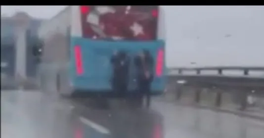 Bu kapsamda, Emniyet Müdürlüğümüz trafik birimlerince yapılan çalışmalar neticesinde, halk otobüsünün arka kısmına tutunarak trafiği tehlikeye düşürdükleri tespit edilen yaşı küçük 2 şahıs hakkında gerekli adli ve idari işlemler başlatılmıştır.”