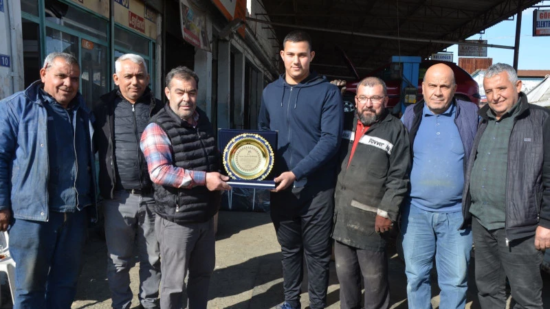 Tunç, “Sanayi esnaflarımızdan Murat Durmaz’ın oğlu genç pehlivanımız Antalya’da yapılan bölge seçmelerinde birinci olmuştur. Bizleri mutlu etmiştir. Her zaman bu tür gençlerin arkasında olacağız.”dedi.