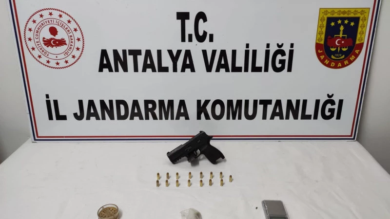 Jandarma Villada ve şahısların evlerinde yapılan aramada 1 adet tabanca ve tabancaya ait 15 adet Fişek, 3,9 gr. Gubar Esrar maddesi, 1 adet Öğütücü Aparat ve 1 adet hassas terazi ele geçirdi.
