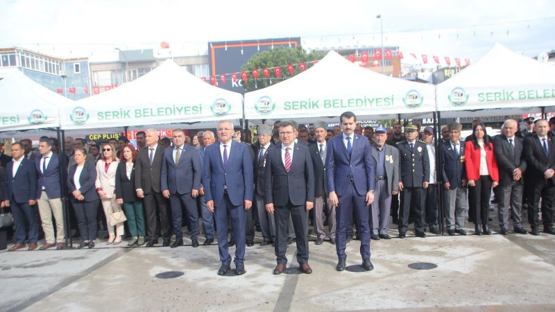 18 Mart Çanakkale Zaferi ve Şehitlerini Anma Programı için ilk tören Cumhuriyet Meydanı'nda Atatürk Anıtına çelenk sunulması ile başladı. Törene Serik Kaymakamı Cemal Şahin, Belediye Başkanı Enver Aputkan, Cumhuriyet Başsavcısı Burak Erdoğan, daire müdürleri, siyasi parti temsilcileri, sivil toplum kuruluşlarının temsilcileri katıldı.