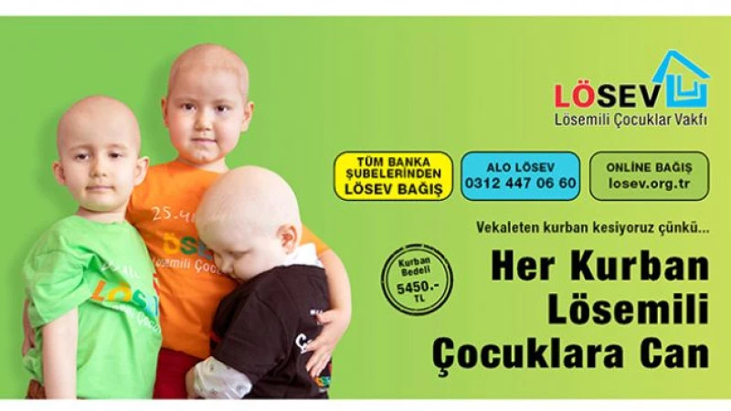 25 yıldır kanserle mücadelede en ön safta yer alan LÖSEV, Kurban Bayramı sevincini lösemi ve kanser tedavisi gören Çocukların yanı sıra yetişkin kanser hastalarının da evlerine taşıyor. LÖSEV, yardımlaşmanın ve paylaşmanın ortak mutluluğunu, 20 yıldır vekaleten kurban kesimleriyle ve “Mutlu Et Projesi” kapsamında gerçekleştirdiği Türkiye geneli et dağıtımlarıyla, sadece veren elden alan ele değil aynı zamanda gönülden gönüle ulaştırıyor. LÖSEV, bu yıl için kurban bağışı fiyatını 5 bin 450 TL olarak belirlediğini duyurdu.
