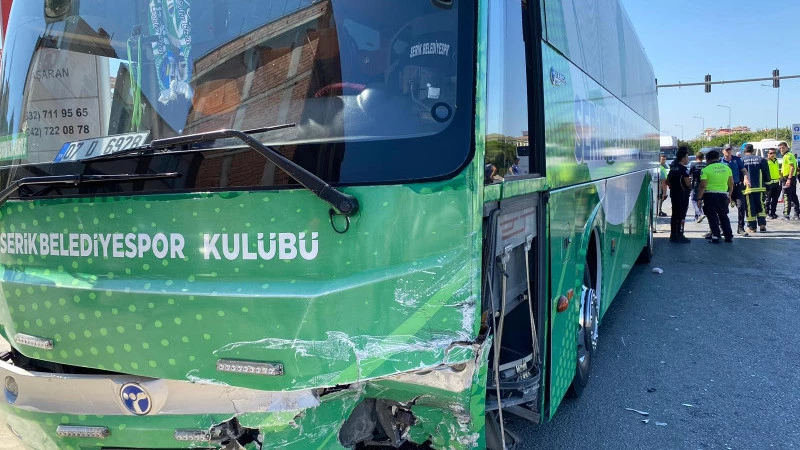 Serik belediyespor takım otobüsü kaza yaptı, 1 kişi yaralandı