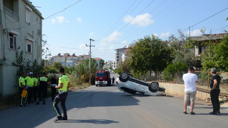Antalya’nın Serik ilçesinde takla atan otomobilde bulunan sürücü anne ile küçük oğlu yaralandı.