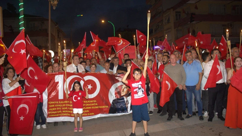 Cumhuriyetin 100. Kuruluş yıldönümü etkinlikleri kapsamında CHP Serik ile teşkilatı önderliğinde “Türk Bayrağını Al da gel birlikte yürüyelim” yürüyüşü düzenlendi.