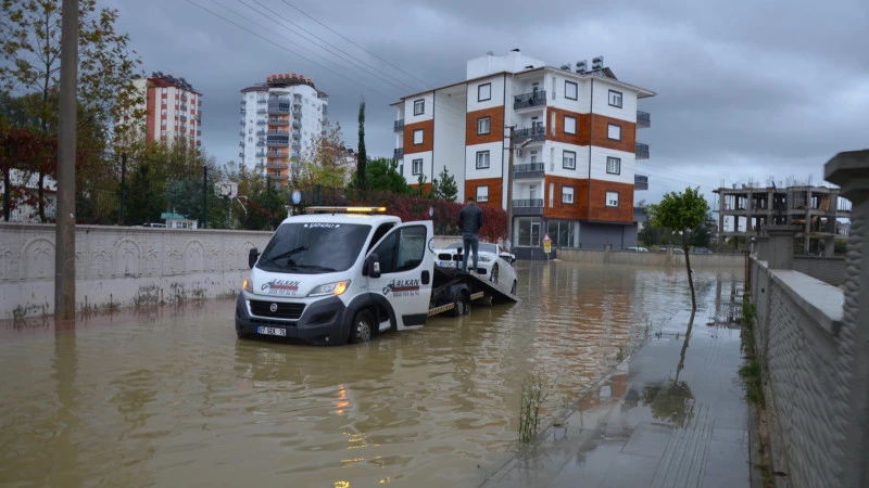 Antalya’nın Serik ilçesinde sabah saatlerinde başlayan şiddetli yağış bazı bölgelerde su taşkınlarına sebep oldu. Araçlar sular içinde kaldı.