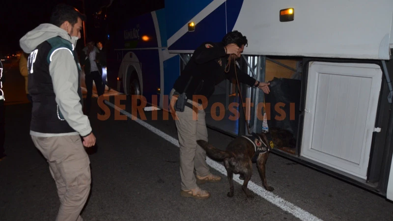 Antalya’nın Serik ilçesinde önleyici güvenlik tedbirleri kapsamında Serik ilçe emniyet müdürlüğü ekiplerince huzur uygulaması yapıldı. Uygulamada emniyetin narkotik köpeği Pars da katıldı.