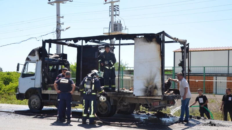 Antalya’nın Serik ilçesinde seyir halindeki kamyonette henüz tespit edilemeyen bir nedenle yandı. Yangına ilk anda yakında bulunan işyeri çalışanları müdahale etti.