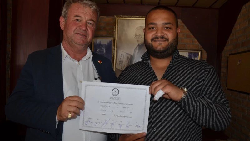 Kürüş mahalle muhtarı olan Demir, mazbatasını alarak göreve başladı.