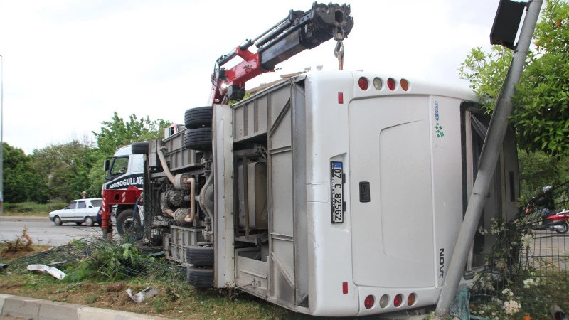 Serik’te servis midibüsü devrildi 19 kişi yaralandı