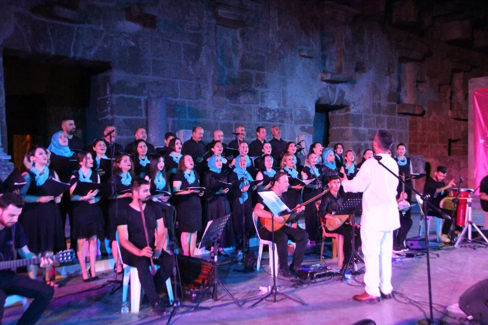 Tarihi Aspendos Tiyatrosunu dolduran izleyiciler konser sonunda THM Korosunu ayakta alkışladı.