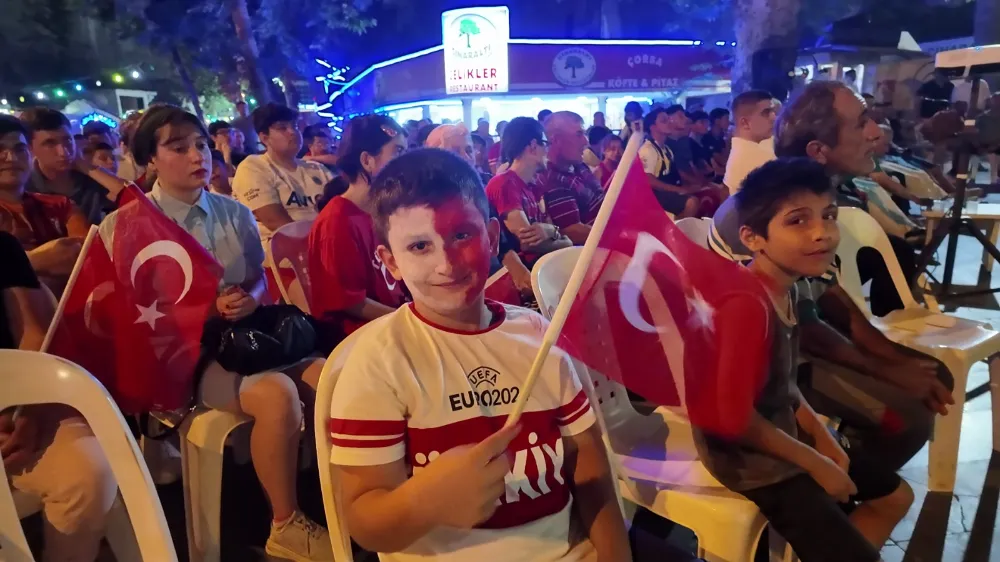 Vatandaşlar, Türk bayraklarıyla açık alanda bir araya gelerek milli takım coşkusunu doyasıya yaşadılar.