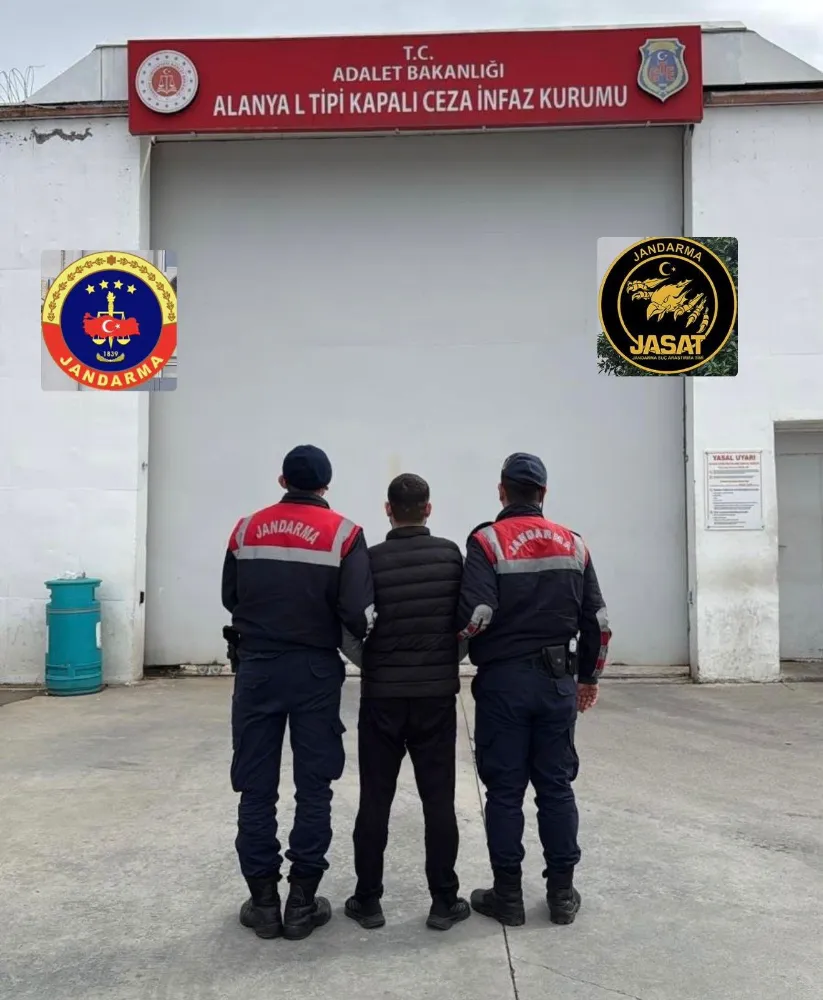 Alanya Cumhuriyet Başsavcılığı talimatları doğrultusunda; Antalya İl Jandarma Komutanlığı ekiplerince aranan şahısların yakalanmasına yönelik yürütülen çalışmalar kapsamında, Bina İçinde Muhafaza Altına Alınmış Olan Eşya Hakkında Hırsızlık, Kilitlenmek Suretiyle Muhafaza Altına Alınmış Olan Eşya Hakkında Hırsızlık ve Hükümlü veya Tutuklunun Kaçması suçlarından hakkında 22 yıl kesinleşmiş hapis cezası bulunan F.K. isimli şahıs, yapılan takip neticesinde Jandarma Dedektifleri (JASAT) tarafından yakalandı. Yakalanan şahıs, adli işlemlerinin tamamlanmasının ardından sevk edildiği adli makamlarca tutuklanarak cezaevine teslim edildi.
