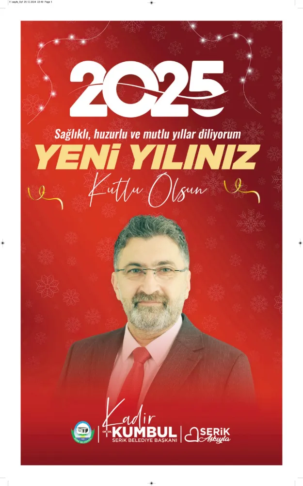 Serik Belediye Başkanı Op Dr Kadir Kumbul sosyal medya hesabından yılbaşı kutlama mesajı yayınladı.