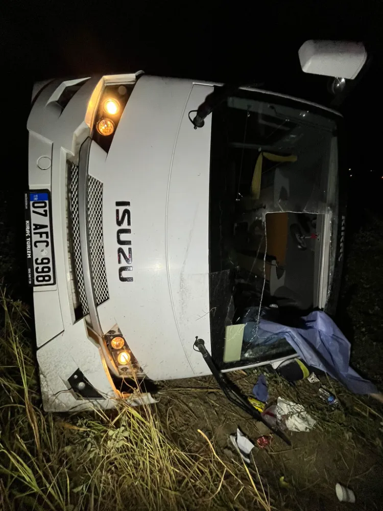 Kadir Korkmaz (65) idaresindeki 07 AFC 998 plakalı midibüs, yağış nedeniyle kayganlaşan yolda, sürücüsünün direksiyon hakimiyetini kaybetmesi sonucu yoldan çıktı ve şarampole devrildi.