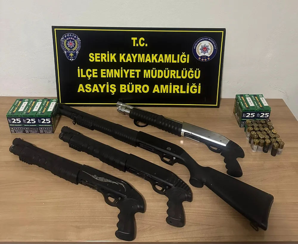Operasyonla ilgili Serik Kaymakamlığından yapılan açıklamada şu ifadelere yer verildi; “Serik Cumhuriyet Başsavcılığı koordinesinde İlçe Emniyet Müdürlüğümüz tarafından yapılan operasyonda 6136 sayılı Kanuna muhalefet ederek ruhsatsız silah bulunduran şahıslarla ilgili yapılan çalışmalarda 7 ikamet ve 2 işyeri aramalarında; 3 şahıstan 4 adet ruhsatsız av tüfeği ve 218 adet av tüfeği fişeği ele geçirilmiştir. Şüpheli 3 kişiye 13 sayılı kanuna muhalefet suçundan işlem yapıldı”