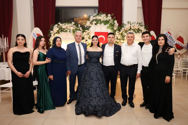 Pazar günü Kadriye Düğün Salonunda düzenlenen nişan törenine; MHP Antalya İl Başkanı Sadullah Güneş, Belek Üniversitesi Genel Sekreteri Mehmet Karakaş, MHP Serik İlçe Başkanı Ahmet Güzel, Ülkü Ocakları Antalya İl Başkanı Ömer Faruk Yıldırım, TÜRKAV Antalya İl Başkan Vekili Gökhan Aydın, siyasi parti il ve ilçe yöneticileri, STK temsilcileri ve kalabalık bir daveti topluluğu katıldı.