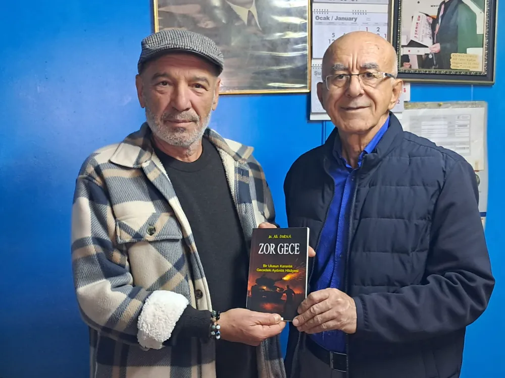 Serik Postası Gazetesi Genel Yayın Yönetmeni Namık Kemal Kılınç’ı ziyaret eden Yazar M.Ali Durna Zor Gece, Bir ulusun karanlık gecedeki aydınlık hikayesi adlı kitabına hediye etti.