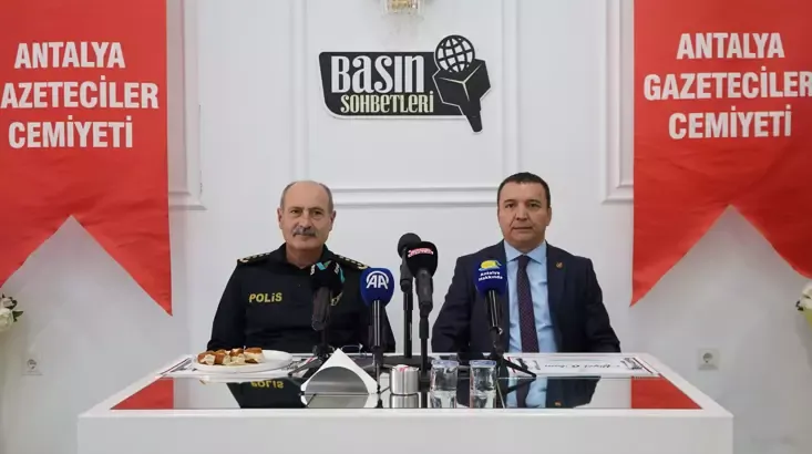 Antalya İl Emniyet Müdürü Sabit Akın Zaimoğlu, Antalya Gazeteciler Cemiyeti'nin (AGC) 'Basın Sohbetleri' programına konuk oldu. AGC Sosyal Tesisleri'nde düzenlenen toplantıda konuşan Zaimoğlu, Antalya'nın turizmin başkenti olduğuna dikkati çekerek, kente gelen yerli ve yabancı misafirlerin huzur ve güven içinde tatillerini yapmasının öncelikleri olduğunu söyledi. İl Emniyet Müdürü Zaimoğlu, suçla mücadelenin temel hedefinin vatandaşın mağduriyetini önlemek olduğunu vurguladı. Antalya'da genel suç aydınlatma oranının yüzde 99 seviyesinde olduğunu belirten Zaimoğlu, mal varlığına karşı işlenen suçlarda bu oranın yüzde 98,2'ye ulaştığını söyledi. Zaimoğlu, “Suçu tamamen engelleyemediğimiz durumlarda bile olayları en kısa sürede aydınlatarak adaletin yerini bulmasını sağlıyoruz. Antalya'da suç işleyenlerin hiçbir şeyin yanına kalmadığı bir şehir düzeni oluşturmayı hedefliyoruz" dedi.